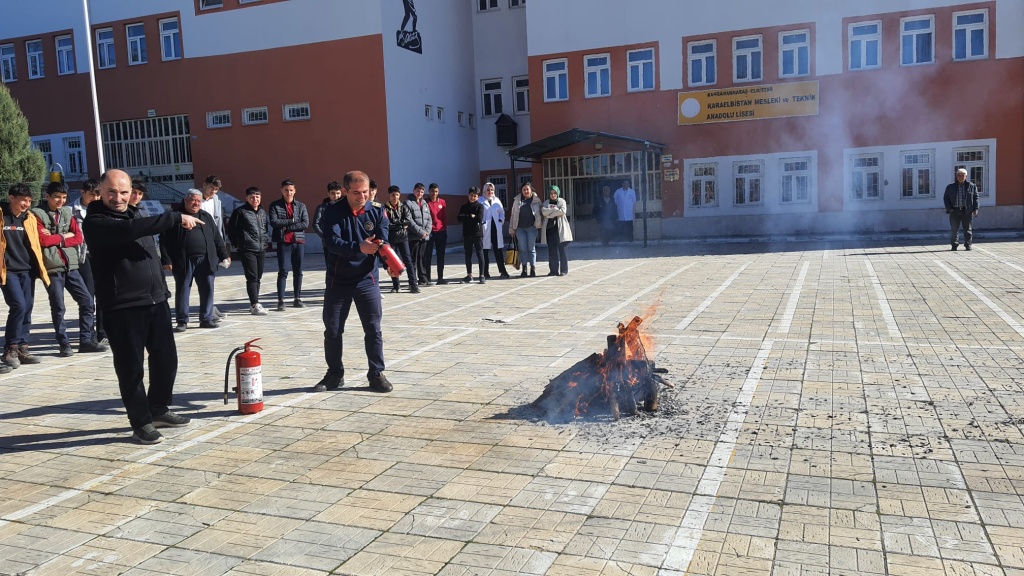 Kahramanmaraş İtfaiye Müdürlüğü, Sivil Savunma Haftası etkinlikleri kapsamında okulumuzda afet eğitimi ve yangın tatbikatı düzenledi. Eğitim ve tatbikat faaliyetleri, öğrencilerin afet durumlarına hazırlıklı olmalarını ve yangın gibi acil durumlarda nasıl tepki vermeleri gerektiğini öğrenmelerini amaçladı.